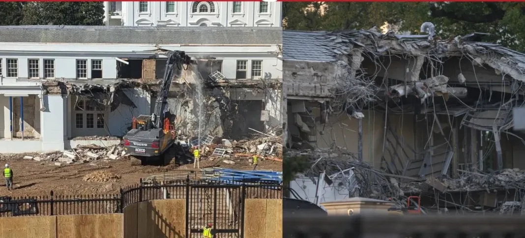 वॉशिंगटन, एजेंसियां। अमेरिकी राष्ट्रपति डोनाल्ड ट्रंप ने व्हाइट हाउस के ईस्ट विंग में बुलडोजर चलवा दिया है। इसका उद्देश्य नया, विशाल और भव्य बॉलरूम बनवाना है। 20 अक्टूबर 2025 से शुरू हुए इस प्रोजेक्ट में छत, प्रवेश द्वार और खिड़कियों सहित कई हिस्सों की तोड़फोड़ की जा रही है। व्हाइट हाउस ने सोशल मीडिया के माध्यम से इसकी पुष्टि की है और बताया कि निर्माण दल लगातार कार्यरत है।