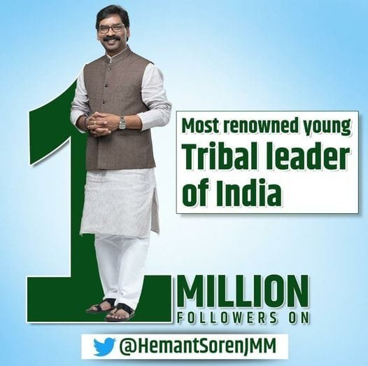 लोकप्रियता के पायदान पर आगे बढ़े मुख्यमंत्री हेमंत सोरेन, ट्वीटर पर हुए 10 लाख से ज्यादा फॉलोअर्स