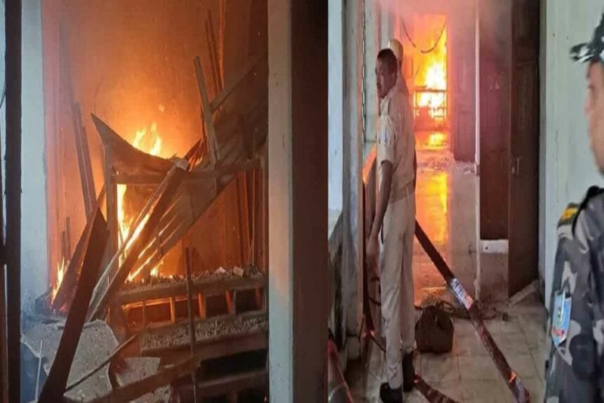 रांची : झारखंड की राजधानी रांची में स्थित 184 साल पुराने जिला स्कूल में गुरुवार को आग लग गयी। आग की लपटों ने जिला स्कूल के लगभग सभी कमरों को अपनी चपेट में ले लिया। आग लगने के बाद स्कूल में अफरा-तफरी फैल गयी। जब आग लगी उस समय बच्चे कमरों में ही थे।