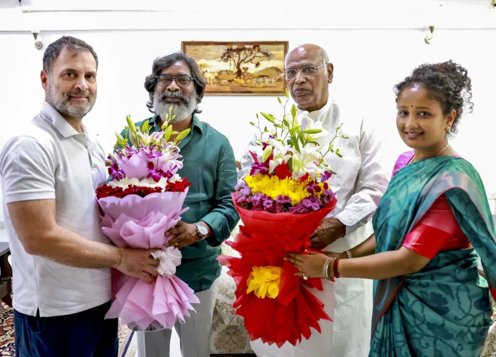 इसी बीच कार्यवाहक सीएम हेमंत सोरेन ने अपनी पत्नी और गांडेय विधायक कल्पना सोरेन के साथ दिल्ली में सांसद राहुल गांधी और कांग्रेस प्रमुख मल्लिकार्जुन खड़गे से मिले। इस दौरान उन्होंने दोनों को शपथ ग्रहण समारोह में आमंत्रित किया।