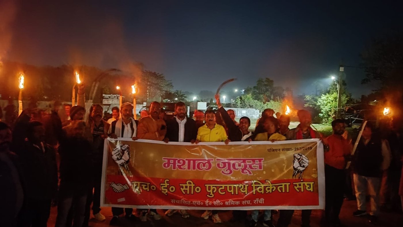 रांची। रांची के एचईसी इलाके में मशाल जुलूस निकाला गया। इसके लिए काफी संख्या में व्यवसाई पहुंचे।