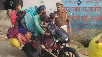 एक ही बाइक पर रजाई, गद्दा, लाठी और बाल्टी जैसे सामान के साथ 8 सवारियां बैठा कर जाते देख ट्रैफिक पुलिस ने बाइक सवार लोगों को रोक लिया। इसके बाद ट्रैफिक पुलिसकर्मी ने उन्हें फटकार लगाई और सवारियों की गिनती करके यातायात के नियमों का पाठ पढ़ाते हुए उन्हें जाने दिया।