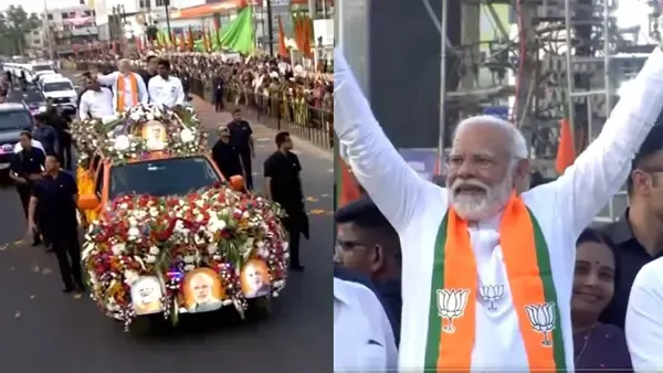 जैसे ही मोदी ने एक खुले वाहन में अपना रोड शो शुरू किया, सड़क के दोनों ओर जमा हुए लोगों ने उन पर फूल बरसाए और उनके समर्थन में नारे लगाए।