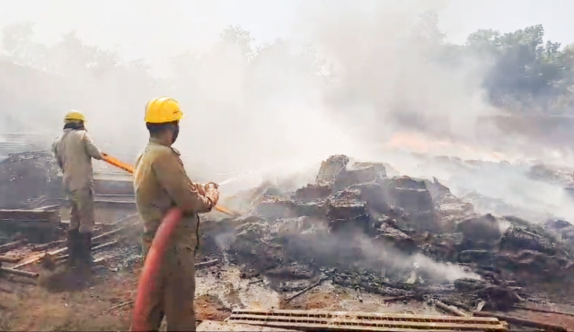 बताया जा रहा है कि गोदाम की बाउंड्री के बाहर आग लगाई गई थी, जिसकी चिंगारी उड़कर भीतर आईं, जिससे गोदाम में आग लगी।