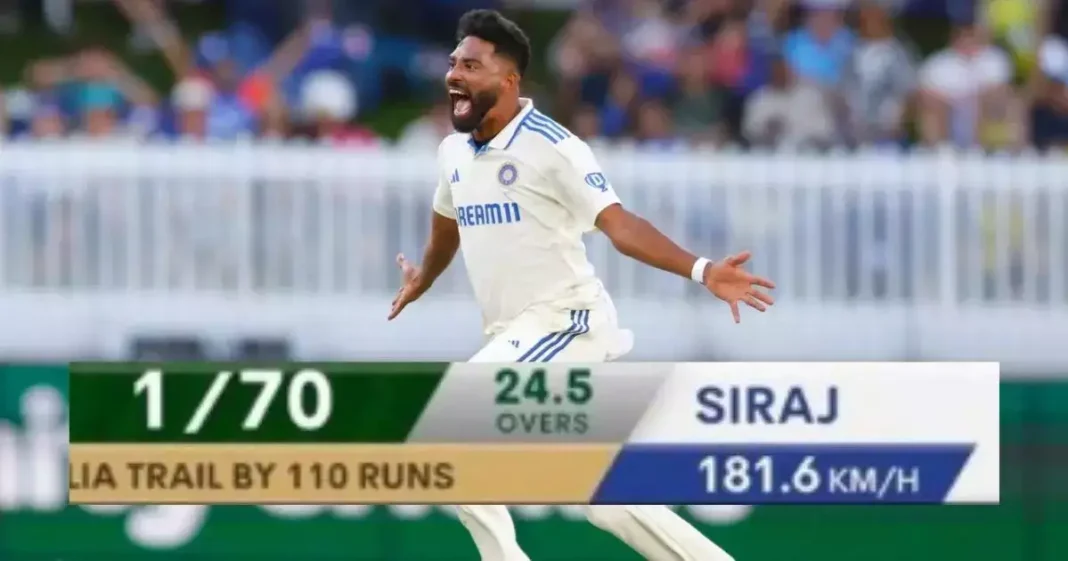 यह घटना ऑस्ट्रेलिया की पारी के 25वें ओवर की है। मोहम्मद सिराज ने इस ओवर की चौथी गेंद फेंकी जिस पर ब्रॉडकास्टर ने उनकी गेंद की स्पीड 181.6 किमी प्रति घंटा दिखाई। इसे देखकर हर कोई हैरान रह गया।