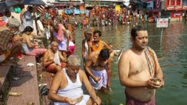 देवघर। देवघर के शिवगंगा तट पर सोमवार से पितृ पक्ष की शुरुआत हो गई है। सुबह से ही बड़ी संख्या में श्रद्धालु अपने पितरों को तर्पण करने पहुंचे। चंद्र ग्रहण के बाद स्नान का विशेष महत्व होने के कारण भी यहां भारी भीड़ जुटी। श्रद्धालु स्नान के बाद तर्पण और पिंडदान कर अपने पूर्वजों को जल अर्पित कर रहे हैं।