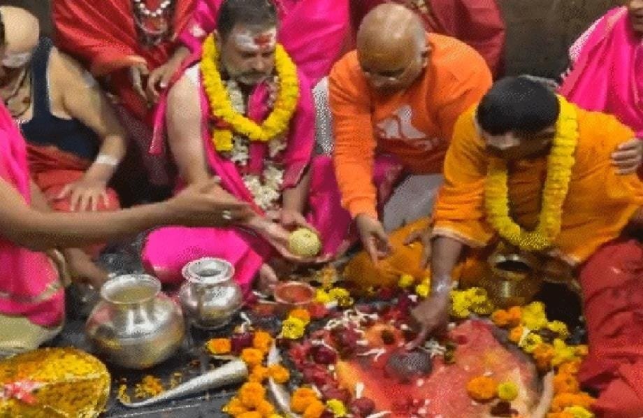 रांची। राहुल गांधी की न्याय यात्रा आज दोपहर बाद देवघर पहुंची। यहां राहुल गांधी ने बाबाधाम में पूजा-अर्चना की। पूजा के दौरान राहुल गांधी ने गुलाबी धोती पहन रखी थी। पुजारियों ने उनके माथे पर तिलक भी लगा दिया था।