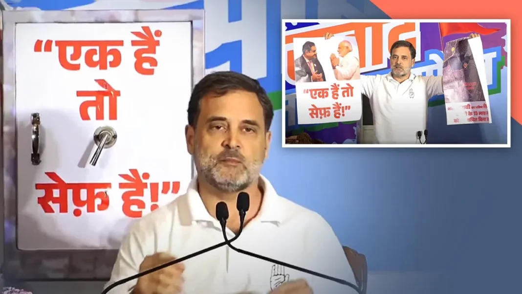 राहुल ने कहा, ‘देश के शिपिंग पोर्ट, एयरपोर्ट, डिफेंस इंडस्ट्री, धारावी सारा कुछ अडाणी को सौंपा जा रहा है। एक हैं तो सेफ हैं का मतलब एक– मोदी जी, अडाणी जी और शाह सेफ हैं।’
