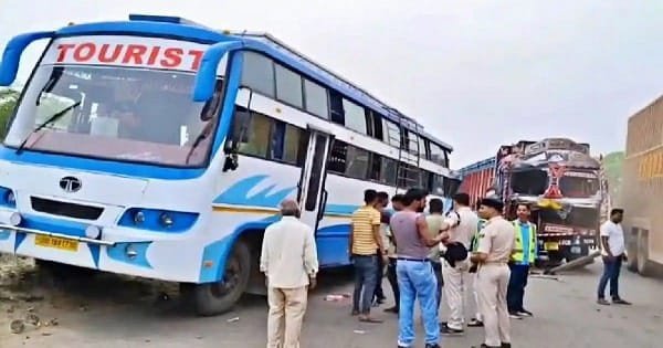 घटना के लेकर बताया जा रहा कि सुबह के समय बिहार के डेहरी में तीर्थयात्रियों की बस में खराबी आ गयी।