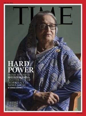 न्यूयॉर्क स्थित समाचार संस्थान ने बताया कि पत्रिका के 20 नवंबर के संस्करण के आवरण पृष्ठ पर हसीना को जगह मिली है। यह संस्करण 10 नवंबर को बिक्री के लिए उपलब्ध होगा। टाइम के चार्ली कैम्पबेल की कवर स्टोरी में कहा गया है, ‘‘76 साल की उम्र में…बांग्लादेश की प्रधानमंत्री ऐसी राजनीतिक सोच का प्रतिनिधित्व करती हैं जिन्होंने 17 करोड़ की आबादी वाले इस देश को देहाती जूट उत्पादक से एशिया-प्रशांत की तेजी से उभरती अर्थव्यवस्था में बदल दिया।’’ इसमें कहा गया है, ‘‘पहले के 1996 से 2001 के कार्यकाल के बाद 2009 से पद पर रहते हुए वह दुनिया में किसी देश की सबसे लंबे समय तक शासन करने वाली महिला प्रमुख हैं और उन्हें फिर से सिर उठा रहे इस्लामवादियों और एक समय में हस्तक्षेप करने वाली सेना दोनों के पर कतरने का श्रेय दिया जाता है।’’